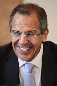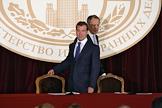 Президент России Дмитрий Медведев (слева) и министр иностранных дел России Сергей Лавров (справа) на совещании российских послов и постоянных представителей при международных организациях. Совещание прошло в министерстве иностранных дел России.