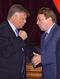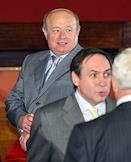 Председатель Торгово-промышленной палаты России (ТПП РФ) Евгений Примаков (справа) и мэр Москвы Юрий Лужков (слева) на совещании российских послов и постоянных представителей при международных организациях. Совещание прошло в министерстве иностранных дел России.