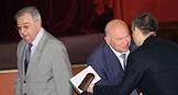 Председатель Торгово-промышленной палаты России (ТПП РФ) Евгений Примаков (слева), мэр Москвы Юрий Лужков (в центре) и министр внутренних дел России Рашид Нургалиев (справа) на совещании российских послов и постоянных представителей при международных организациях. Совещание прошло в министерстве иностранных дел России.