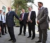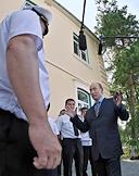 Председатель Правительства России Владимир Путин (в центре), его заместитель Сергей Иванов (второй справа), полномочный представитель Президента России в Южном Федеральном округе Владимир Устинов (второй слева) и министр транспорта России Игорь Левитин (третий слева) перед совещанием по вопросам комплексного использования водных ресурсов посетили Кочетовский гидроузел.