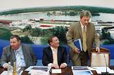 Полномочный представитель Президента России в Южном Федеральном округе Владимир Устинов (в центре) перед совещанием по вопросам комплексного использования водных ресурсовю. Совещание прошло в Кочетовском гидроузле.