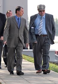 Заместитель председателя Правительства России Игорь Сечин (слева) и полномочный представитель Президента России в Южном Федеральном округе Владимир Устинов (справа) перед совещанием по вопросам комплексного использования водных ресурсовю. Совещание прошло в Кочетовском гидроузле.