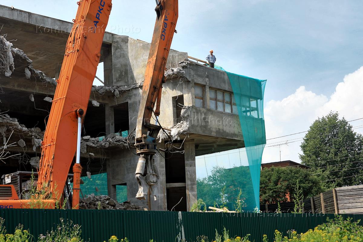 Снос дома в деревне Раздоры на Рублево-Успенском шоссе.