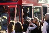 Забастовка в лондонском метро. Пассажиры при посадке в автобус.