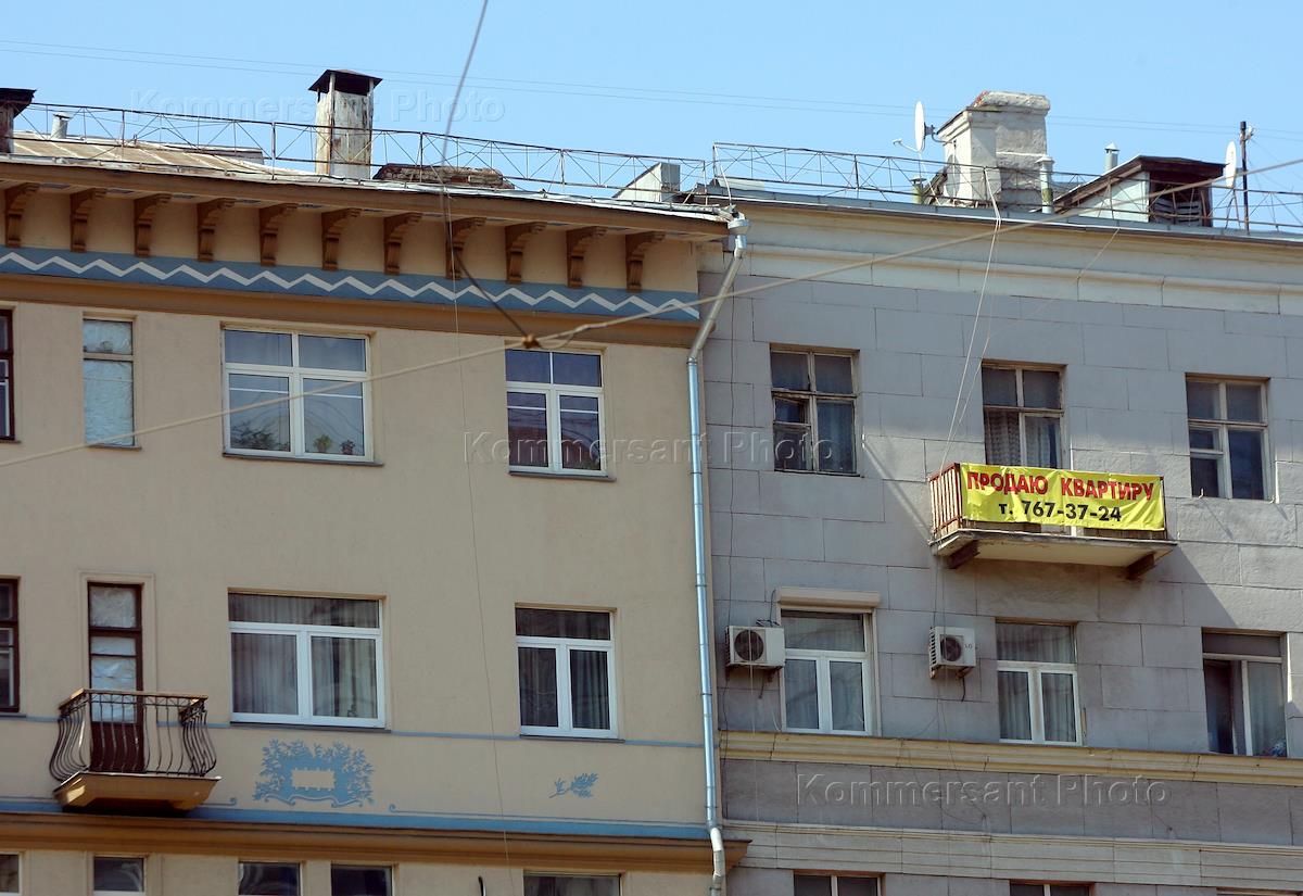 Жанровая фотография. Реклама "Продаю квартиру" на балконе жилого дома.