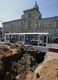 Ремонтные дорожные работы на Садовом кольце. Троллейбус № 79 во время движения по маршруту.