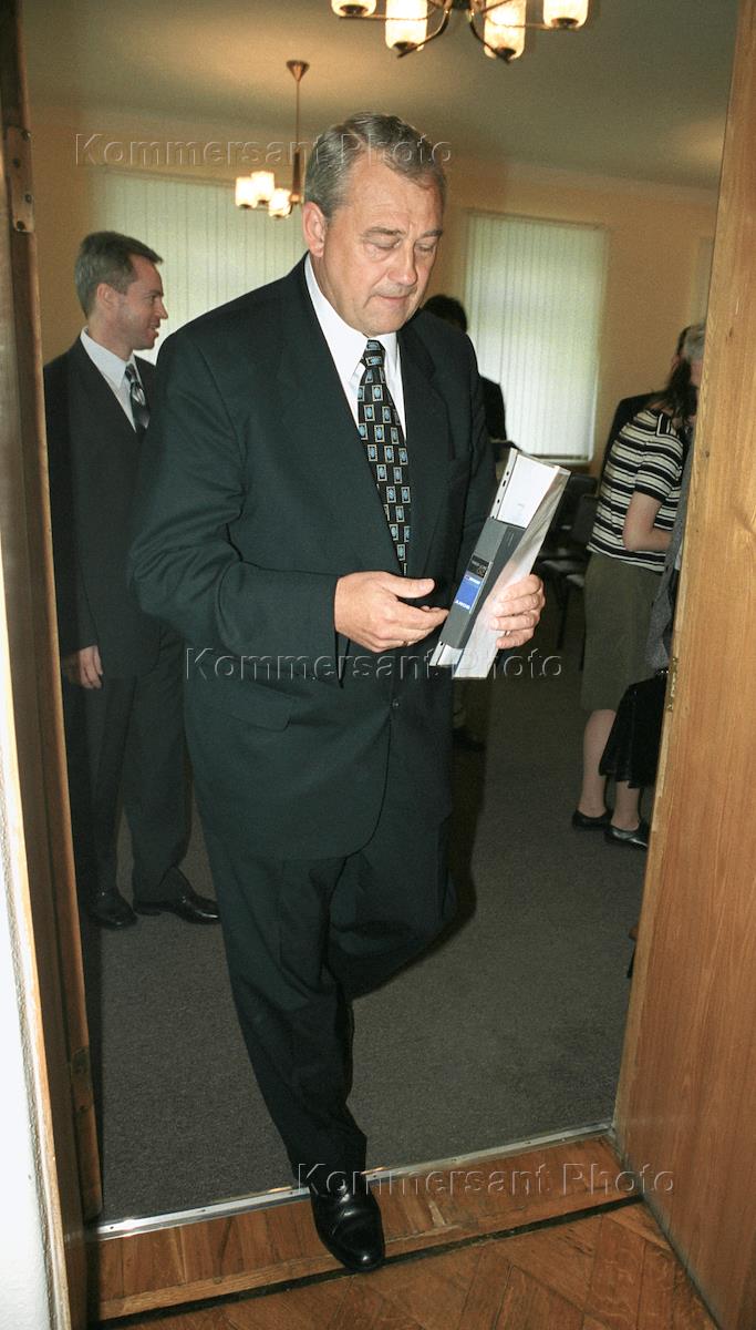 Irkutsk Oblast Governor Boris Govorin arrives at a news conference.