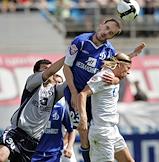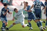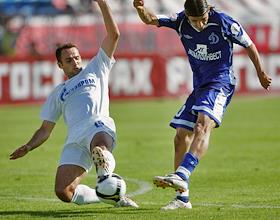 Чемпионат России по футболу. 15 Тур. Футболисты команды "Динамо": вратарь Владимир Габулов (слева), защитник Йован Танасиевич (в центре) и полузащитник команды "Зенит" Анатолий Тимощук (справа) во время матча между командами "Динамо" (Москва) - "Зенит" (Санкт-Петербург)(1:0). Матч прошел на стадион "Динамо".