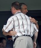Чемпионат России по футболу. 15 Тур. Полузащитник команды "Динамо" Игорь Семшов (слева) и главный тренер команды "Зенит" Дик Адвокат (справа) после матча между командами "Динамо" (Москва) - "Зенит" (Санкт-Петербург)(1:0). Матч прошел на стадион "Динамо".