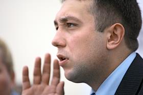 Пострадавший от милицейского произвола Евгений Ткачук во время пресс-конференции и открытии Всероссийской антикоррупционной общественной приемной "Чистые руки" в рамках проекта "Ассоциация адвокатов России за права человека". Пресс-конференция прошла в пресс-центре "Известия".
