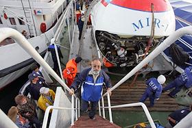 Руководитель экспедиции, член Комитета Государственной Дума России по обороне Артур Чилингаров на борту корабля специального назначения "Метрополия" во время научно-исследовательской экспедиции, по изучению озера Байкал.