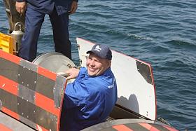 Научно-исследовательская экспедиция "Миры на Байкале", по изучению озера Байкал. Генеральный директор ООО "Инвестиционная финансовая компания "МЕТРОПОЛЬ" Михаил Слипенчук после погружения глубоководного обитаемого аппарата (ГОА) "Мир-1".