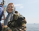 Председатель Комитета Государственной Думы России по природным ресурсам, природопользованию и экологии Наталья Комарова на борту корабля специального назначения "Метрополия" во время научно-исследовательской экспедиции, по изучению озера Байкал.