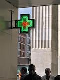 Жанровая фотография. Световая вывеска дежурной аптеки, работающей круглосуточно.
