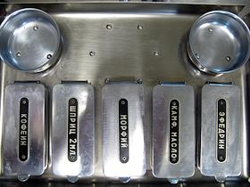 Ветеринарная клиника. Поднос с боксами для шприцев и лекарств.