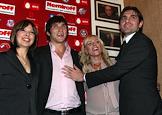 Виджей Арчи (слева), продюсер проекта "ДДО" Светлана Мигулова (вторая слева), певица Юлия Началова (справа) и хоккеист Александр Овечкин (второй справа) после презентации проекта "Дома друзей Олимпиады", созданного для поддержки Олимпийской сборной России. Презентация прошла в московском клубе "Grand Havana Room".