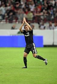 Кубок Российских железных дорог (РЖД) по футболу 2008. Футболист Денис Глушаков во время матча между командами "Локомотив" (Россия) - "Челси" (Англия). Матч прошел на стадионе "Локомотив".