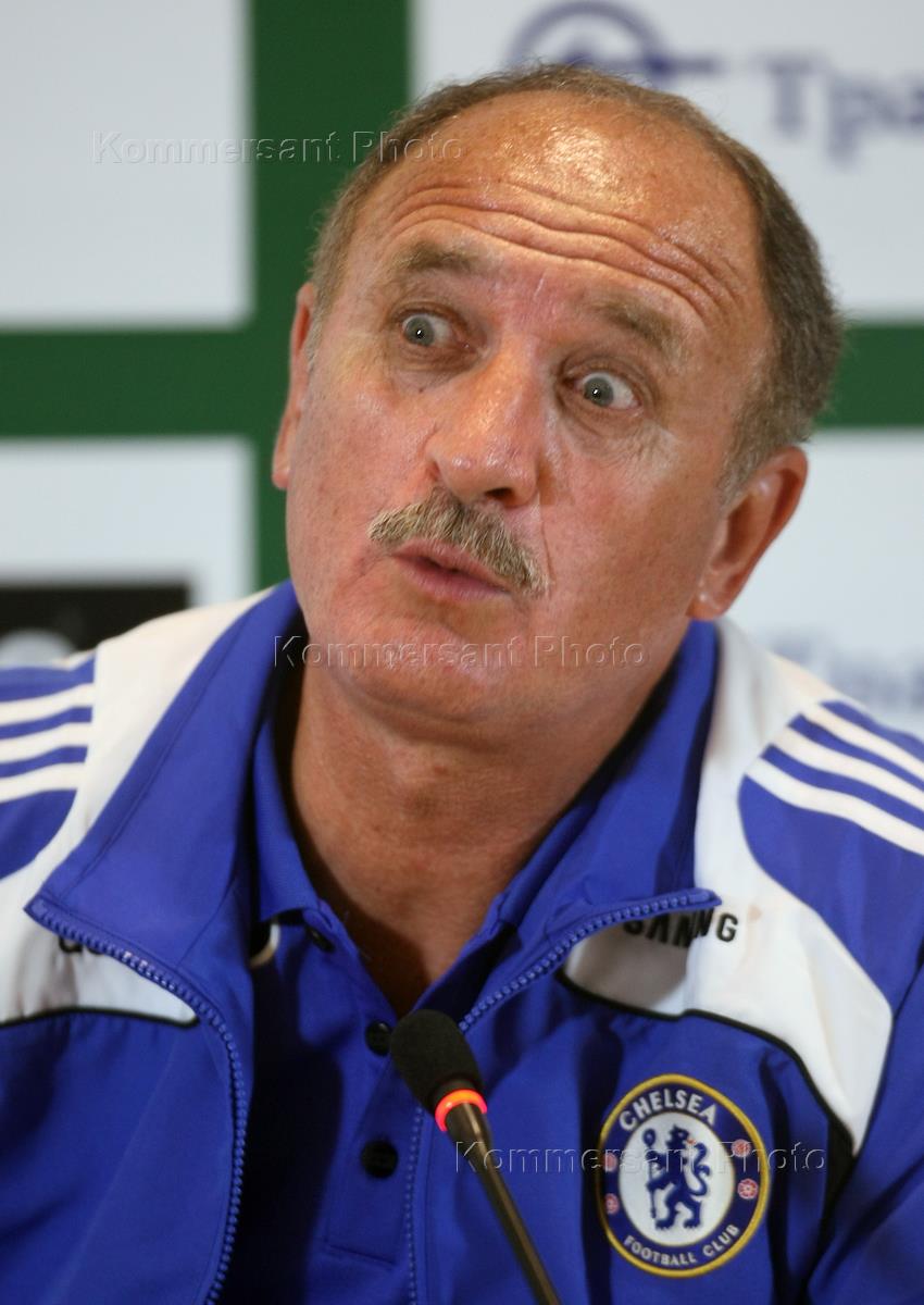 Главный тренер английской футбольной команды "Челси" Луис Фелипе Сколари во время пресс-конференции перед началом футбольного матч между командами "Локомотив" и "Челси" (Англия) в рамках проведения "Кубка РЖД 2008" на стадионе "Локомотив".
