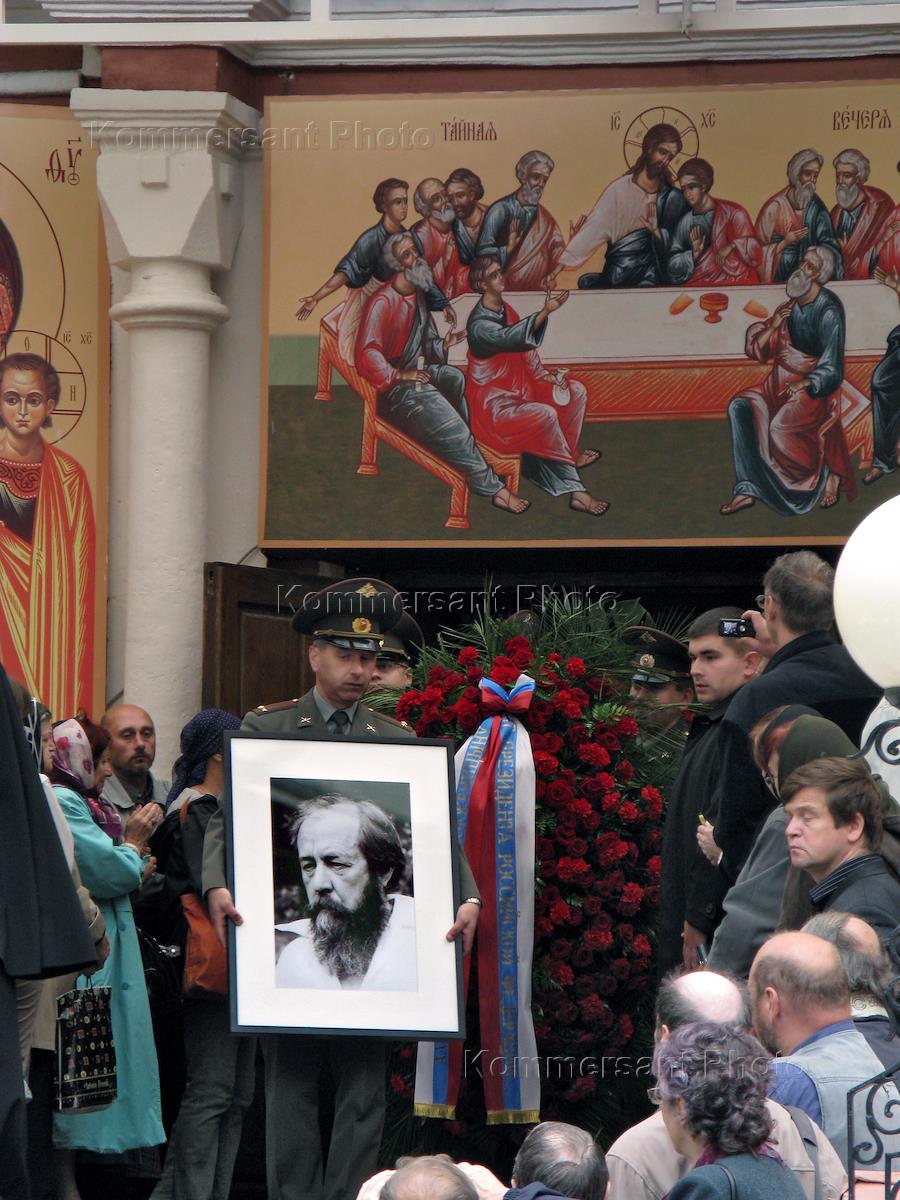 Похороны писателя Александра Солженицына на кладбище Донского монастыря.