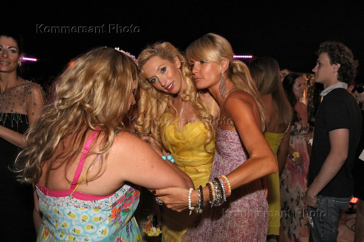 Президент Издательского дома (ИД) "Собака" (Санкт-Петербург) Вероника Белоцерковская (спиной), дизайнер Ульяна Цейтлина (в центре) и искусствовед Яна Расковалова (справа) на Балу цветов ("Bal des Fleurs") на вилле Ротшильда (Villa Ephrussi de Rothschild).
