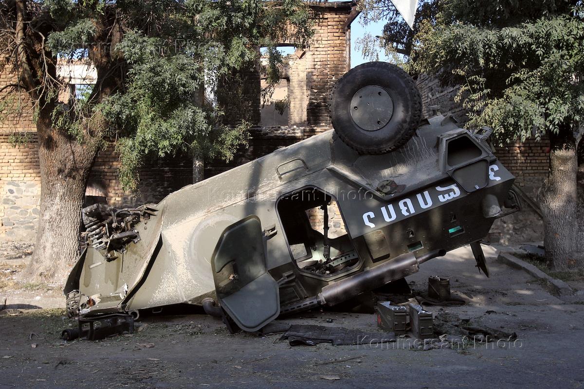 Грузино-югоосетинский вооруженный конфликт. Разбитая грузинская военная техника на улицах города Цхинвал.