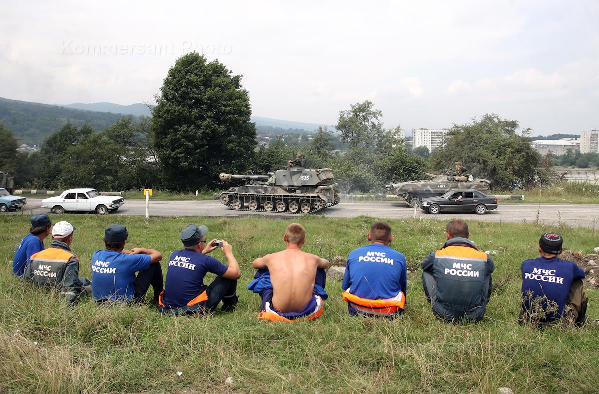 Грузино-югоосетинский конфликт. Военная техника на дороге.