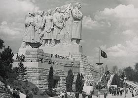 Фотография демонтированного в 1962 году памятника Иосифу Сталину на Летенской смотровой площадке в Праге.
