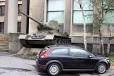 Розовый танк работы чешского скульптора Давида Черного в музее военной истории в Лешанах.