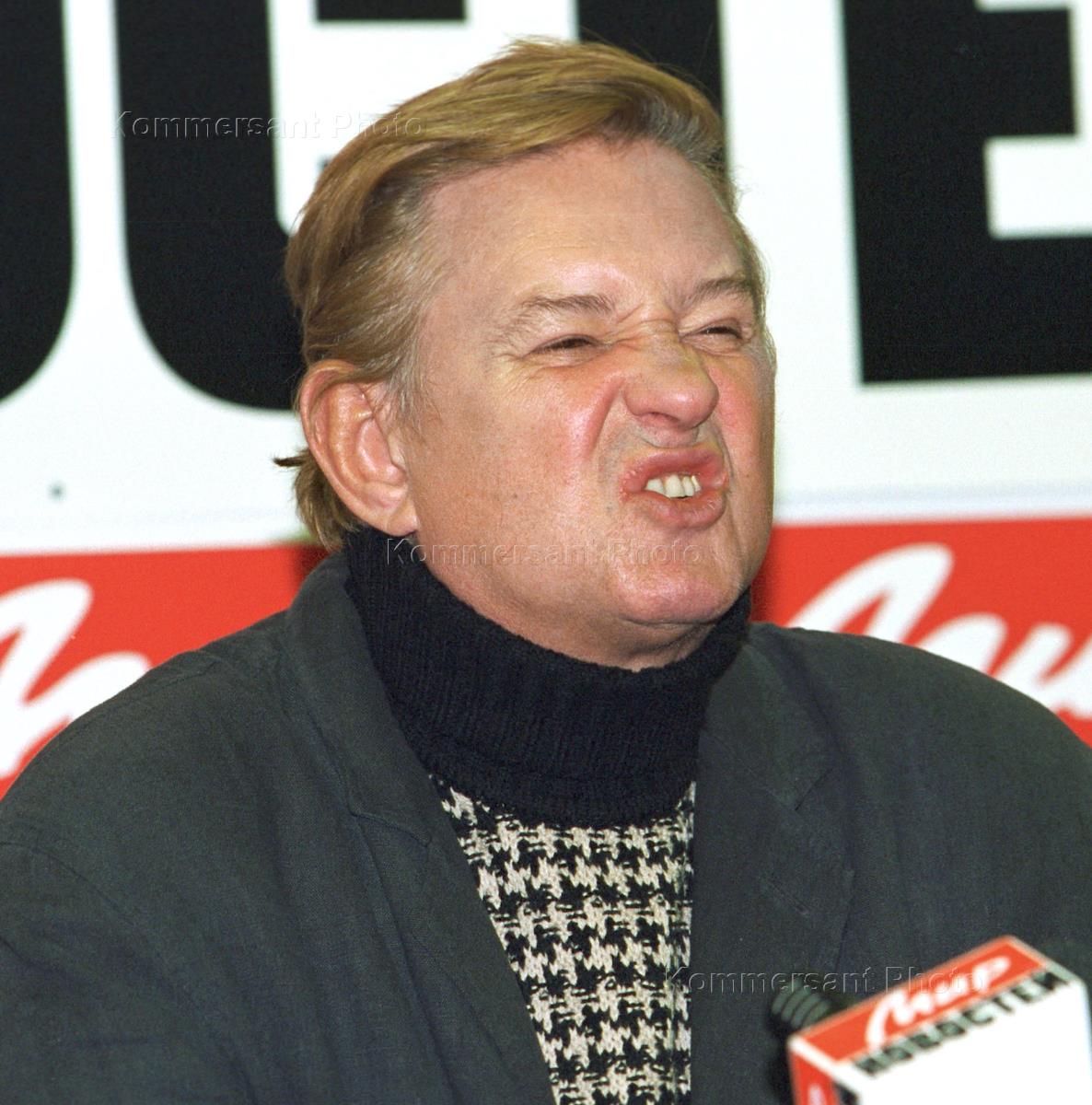 Режиссер Роман Виктюк на пресс-конференции "Мастер и Маргарита" и создатели", посвященной постановке спектакля "Сны Ивана Бездомного" по произведению Михаила Булгакова. Пресс-конференция состоялась в пресс-центре "Мир новостей".