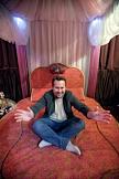 Владелец Мастерской-студии аристократических кроватей Михаил Крючков во время интервью.