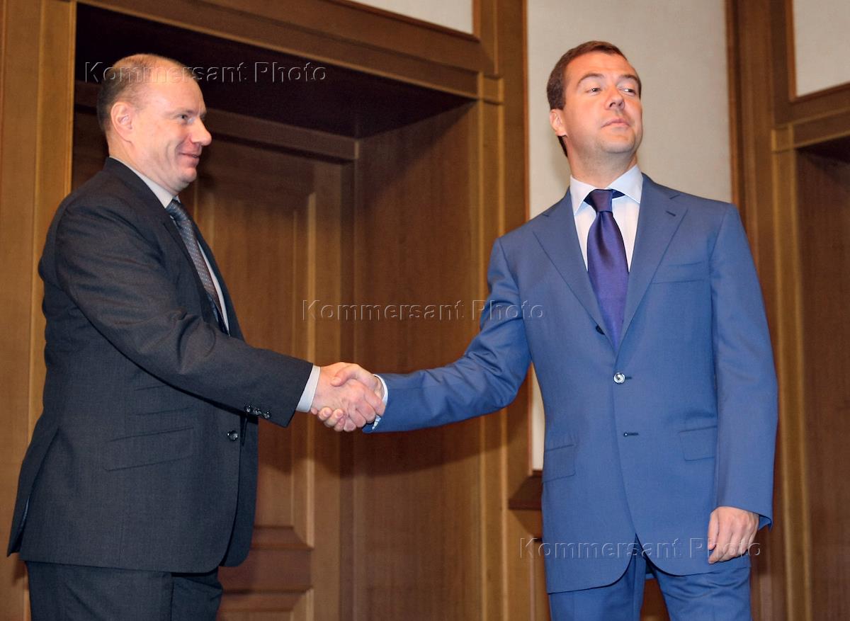 Президент компании "Интеррос" Владимир Потанин во время встречи с Президентом России Дмитрием Медведевым в резиденции "Бочаров ручей".