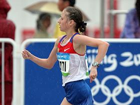 XXIX Летние Олимпийские Игры в Пекине. Российская спортсменка Ольга Каниськина, завоевавшая золотую медаль в ходьбе на 20 километров, во время соревнования.