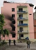 Грузино-югоосетинский вооруженный конфликт. Разрушенные после обстрела жилые дома в Гори.