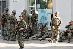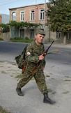 Грузино-югоосетинский вооруженный конфликт. Грузинские военнослужащие на улицах Гори.