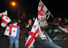 Грузино-югоосетинский вооруженный конфликт. Шествие жителей Тбилиси к российскому посольству на проспекте Руставели.