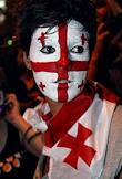 Грузино-югоосетинский вооруженный конфликт. Митинг протеста и шествие к российскому посольству на проспекте Руставели в Тбилиси. Мальчик держит плакат "STOP RUSSIA".