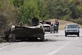 Грузино-югоосетинский вооруженный конфликт. Сгоревшая военная техника на дороге к Гори.