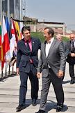Грузино-югоосетинский вооруженный конфликт. Президенты Украины, Эстонии, Литвы и Польши прибыли в Тбилиси, чтобы выразить поддержку и солидарность с грузинским народом на митинге перед зданием парламента. Президент Грузии Михаил Саакашвили (слева) и президент Эстонии Тоомас Хендрик Ильвес (справа) во время встречи.