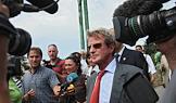 Грузино-югоосетинский вооруженный конфликт. Министр иностранных дел Франции Бернард Кушнер отвечает на вопросы журналистов во время посещения Гори.