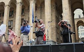 Грузино-югоосетинский вооруженный конфликт. Ситуация в Гори. Фотокорреспонденты во время митинга "Мирная манифестация Грузии" у здания парламента в Тбилиси.