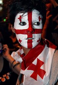Грузино-югоосетинский вооруженный конфликт. Участинки митинга протеста и шествия к российскому посольству на проспекте Руставели в Тбилиси.