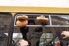 Грузино-югоосетинский вооруженный конфликт. Ситуация в Гори. Раздача гуманитарной помощи от грузинского монастыря на центральной площади города.