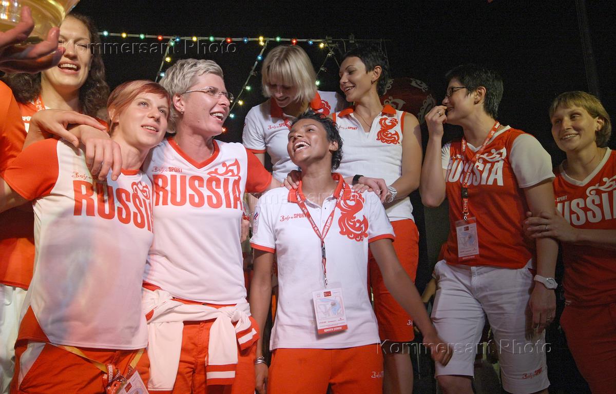 XXIX Летние Олимпийские Игры в Пекине. Женская сборная России по гандболу, завоевавшая серебряные медали Олимпиады, празднует свою победу на вечеринке в "Русском Доме".