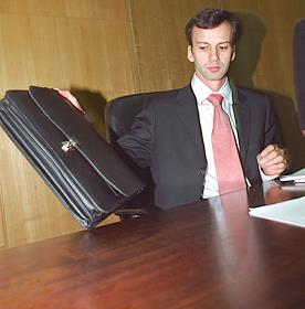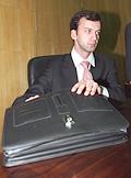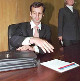 Russia's Deputy Minister for Trade and Economic Development Arcady Dvorkovich readies for the press conference headlined 'Reforming the Banking System of Russia' which took place in the ministry's headquarters.