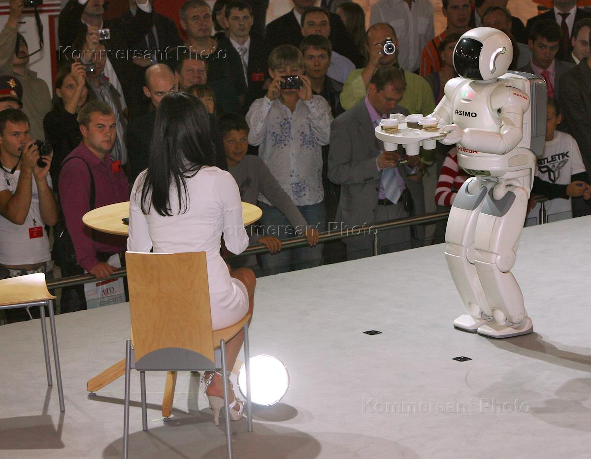 Московский Международный Автомобильный Салон-2008 открылся в выставочном центре "Крокус Экспо". Стенд "Honda" демонстрирует возможности робота.