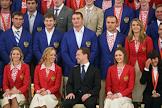 Президент России Дмитрий Медведев (нижний ряд в центре) встретился с чемпионами и призерами Игр XXIX Олимпиады в Пекине. Встреча прошла в Георгиевском зале Большого кремлевского дворца.