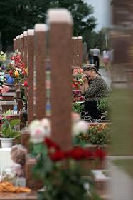 Посещение городского кладбища родственниками погибших во время теракта в школе № 1 города Беслан в сентябре 2004 года.