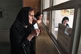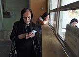 Выдача денежной помощи населению города Цхинвала. Пожилая женщина у окошка выдачи денег.