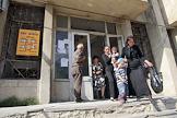 Выдача денежной помощи населению города Цхинвала. Объявления-указатели "обмен валюты", "оплата коммунальных услуг".