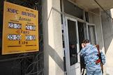 В Цхинвале началась выдача денежной помощи населению. Вывеска пункта обмена валюты.